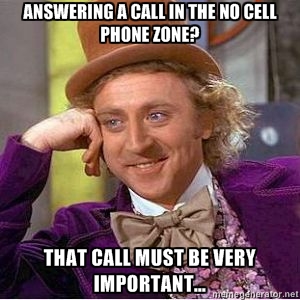 If you’re at work, do your work (this does not apply if your job involves using a cell phone – please don’t send me a message blathering on about how you need your phone for work – that’s not what this is about.)